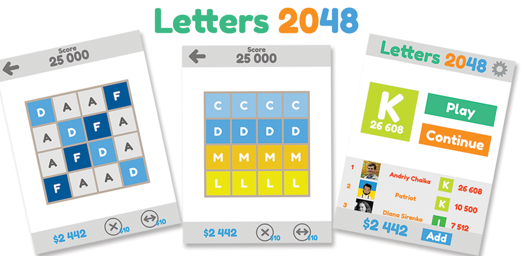 Merge the same balls and become bigger. Letters 2048 is an improved version of classical 2048 puzzle game. Make a swipe to move the tile. Let's merge same letters by moving them in any directions. Swipe to move the letters.